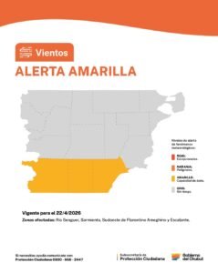 A sacar las camperas y agarrar fuerte lo que vuele: el Servicio Meteorológico Nacional emitió una alerta amarilla por vientos intensos para la noche de este miércoles 22 de abril en el sur de Chubut.
