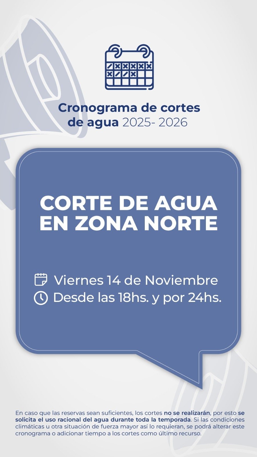 El mensaje es claro y sin filtro: «El uso responsable del agua no es una opción, es una necesidad. ¡Cuidemos cada gota!» Toca organizarse y ser conscientes, o los cortes serán la nueva normalidad.