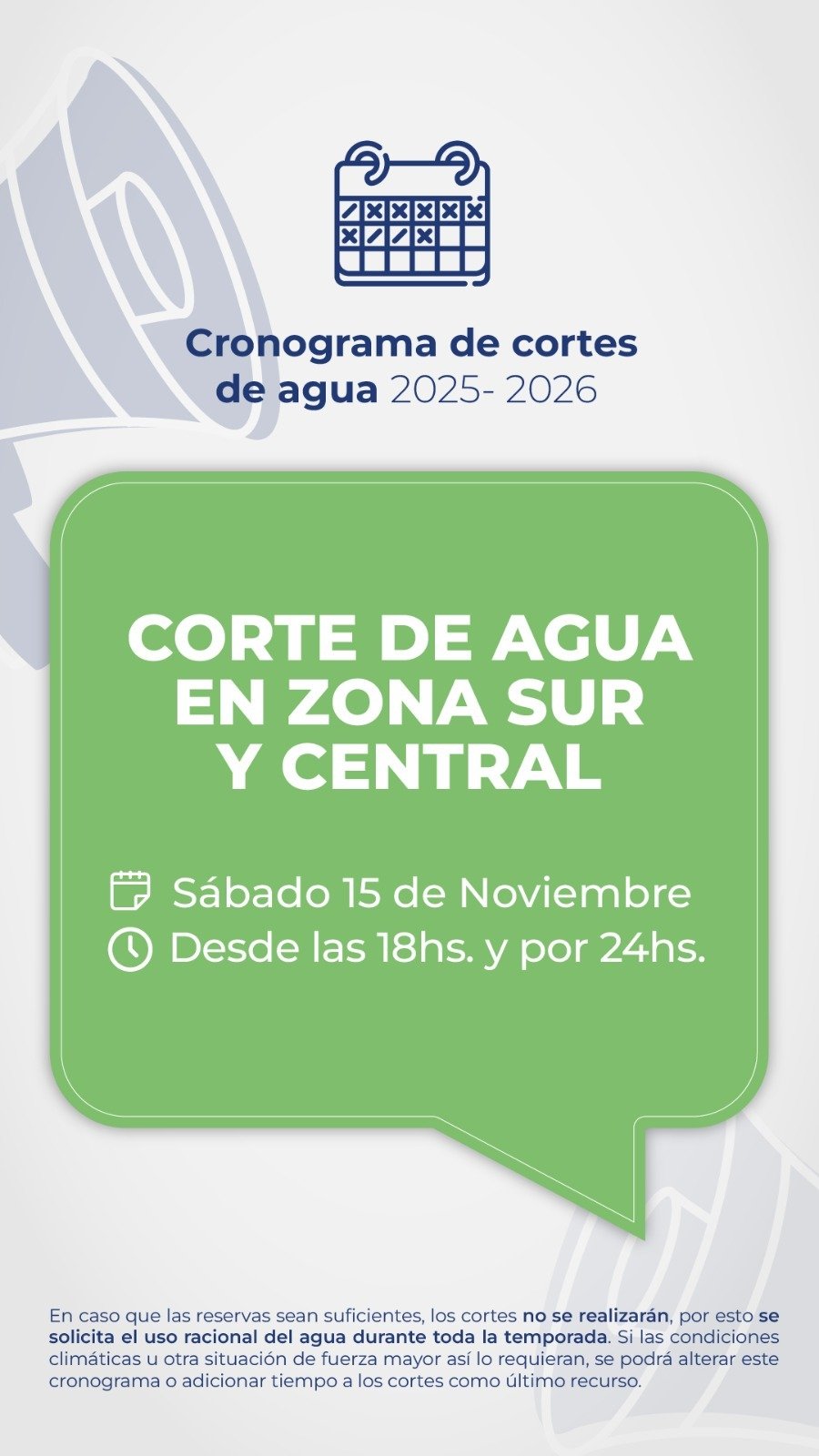 El mensaje es claro y sin filtro: «El uso responsable del agua no es una opción, es una necesidad. ¡Cuidemos cada gota!» Toca organizarse y ser conscientes, o los cortes serán la nueva normalidad.