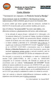 El Sindicato de la Salud Pública (SISAP) de Chubut anunció un paro general para el lunes 1° de diciembre, que se llevará adelante “en todos los establecimientos provinciales de salud, desde las 00 hasta las 24 horas”, según informaron a través de un comunicado oficial.