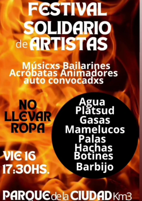 El festival solidario será este viernes 16 desde las 17:30, en el Parque de la Ciudad, en el barrio Km 3. Entrada libre, espíritu colectivo y un objetivo claro: reunir insumos reales, de esos que sirven de verdad cuando estás cara a cara con un incendio forestal. Nada de likes tibios. Acá se necesita acción.