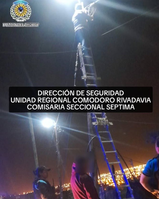 Aunque el parte policial no lo diga, cualquiera que viva en Comodoro puede imaginar la escena: un poste, una escalera, un grupo mirando desde lejos, y la típica charla interna de “¿lo está haciendo en serio?” mezclada con la eterna teoría conspirativa de que en esta ciudad todo el mundo conoce a alguien que sabe “cómo engancharse sin quemarte”.