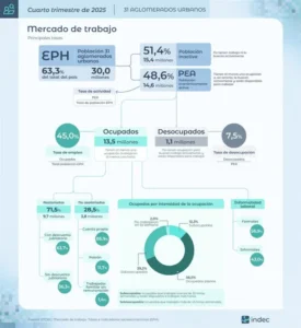 El Instituto Nacional de Estadísticas y Censos (INDEC) dio a conocer este miércoles 18 de marzo los últimos datos del mercado de trabajo correspondientes al cuarto trimestre de 2025, con una tasa de desocupación del 7,5%.
