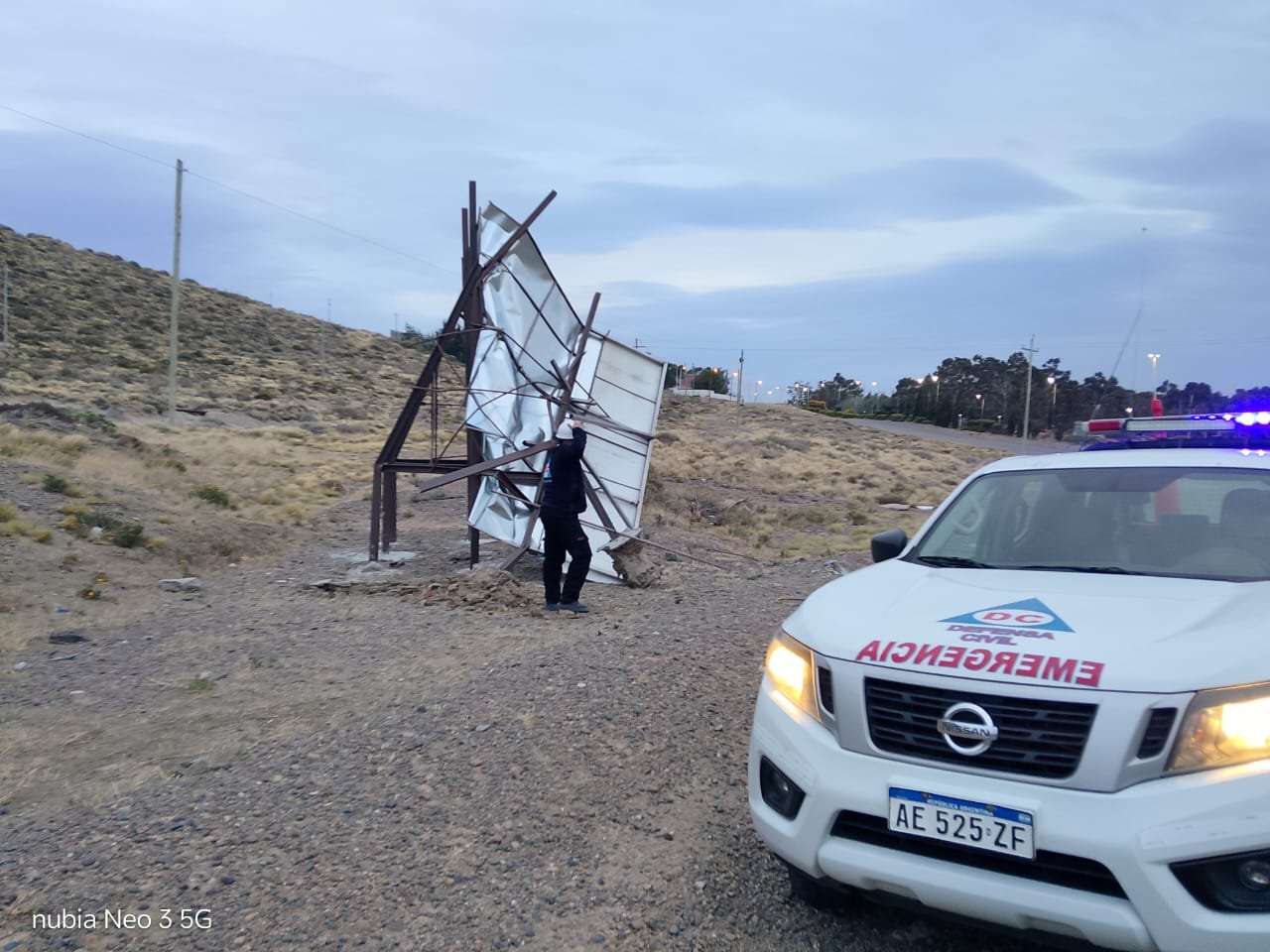 Fotos del despliegue operativo en Comodoro: vientos provocaron caída de carteles y postes