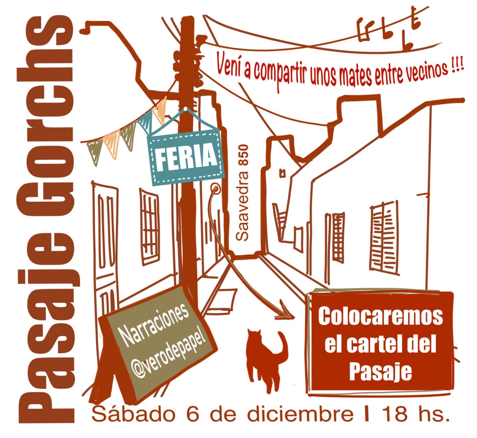 El Pasaje Gorchs se accede por Saavedra 850, justo al lado de @matera_yerbateria. Los organizadores esperan que sea «una tarde para detenernos y ver qué pasa al vernos pasar», reivindicando así la importancia de los espacios vecinales como puntos de encuentro y resistencia cultural.